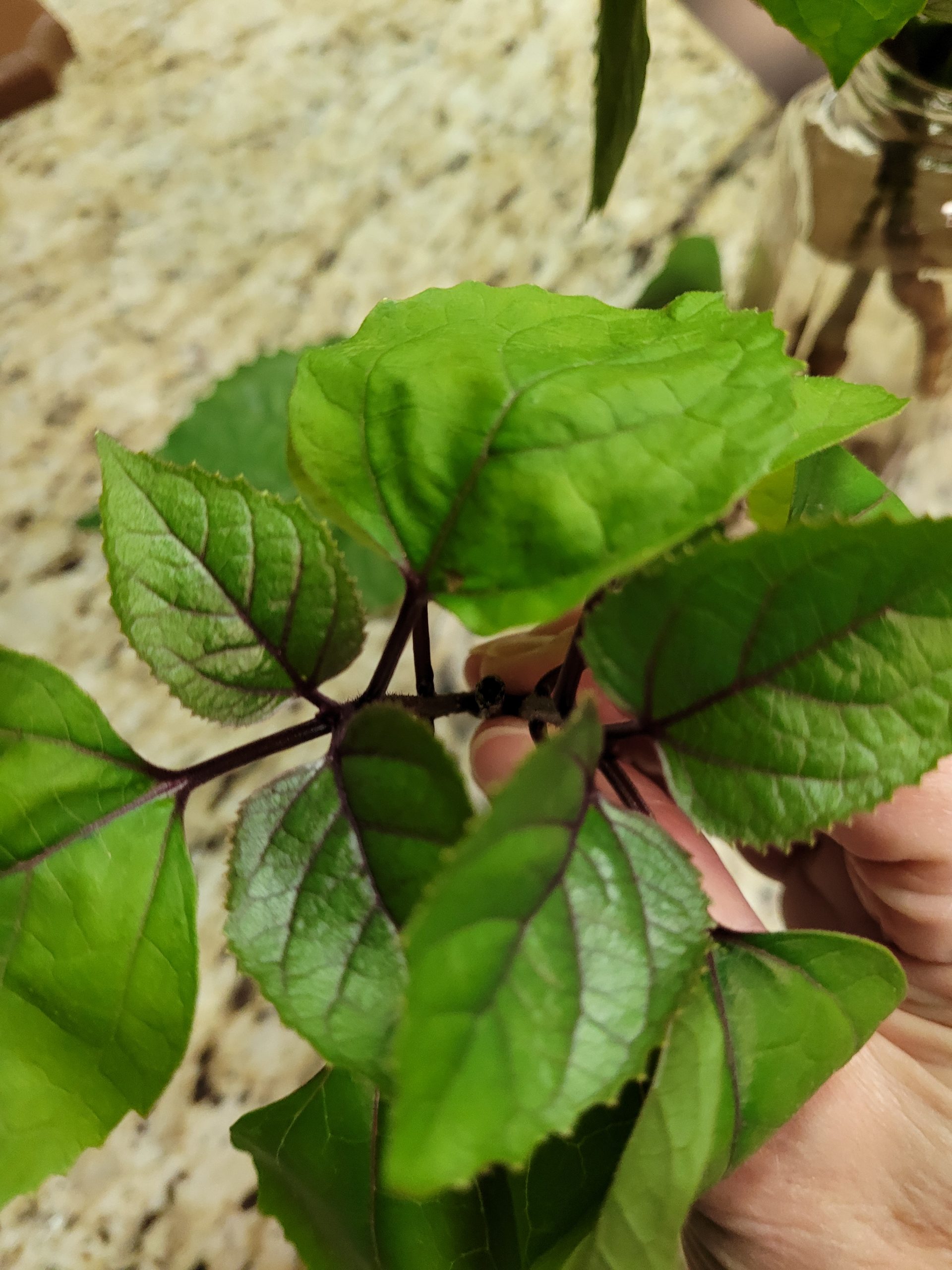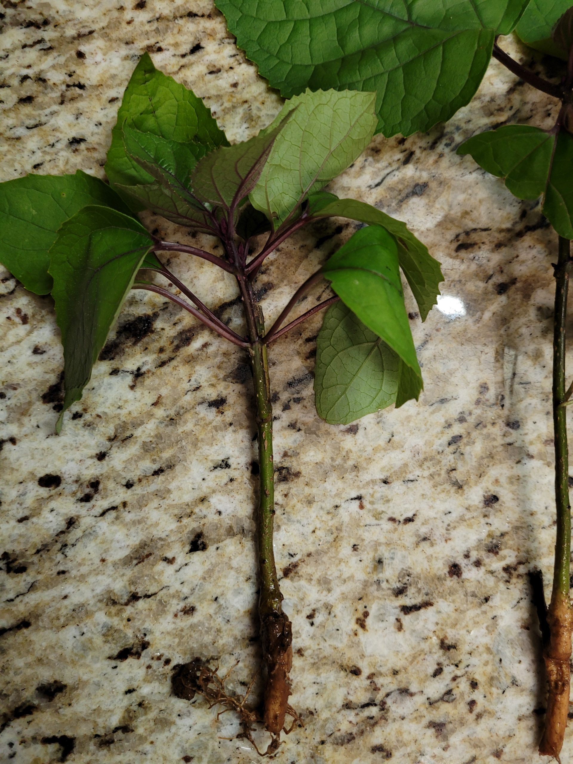 In a neighbors yard, scalped to the ground, cam back the next spring. Max Height 3ft, single woody stalks. New growth has reddish stems. Spreads aggressively. Has a purplish flower similar to vibrunum on the ends of branches. Funky smell as a cutting. ?Glory flower?