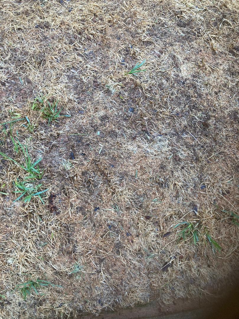 It looks more like chemical/pesticide damage to me. The fact that your seed didn’t germinate is troubling. Do another germination test. If nothing sprouts, consider removing the top 4″ of soil and replacing it with a 1:1 mixture of bagged raised bed soil and your native soil. Do another germination test and it should be okay to plant fescue.