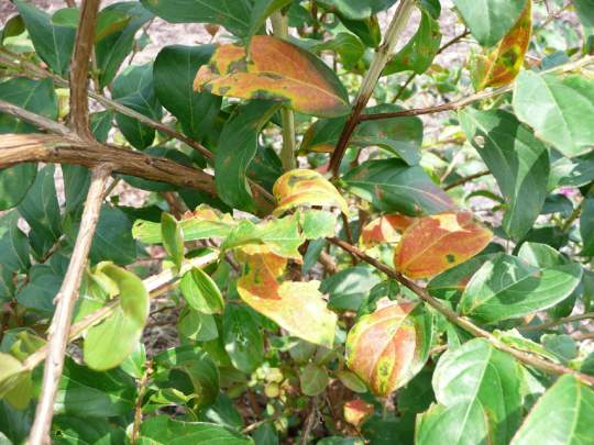 It does look like cercospora. Much to Walter’s chagrin I’ll share this University of Alabama link regarding recommended treatments: http://www.aces.edu/pubs/docs/A/ANR-1047/ANR-1047.pdf Also the Daconil label does not include Crape Myrtle as a listed ormamental.
