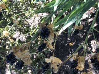 Appears to be a type of lily with blackberry-looking seed pods sticking up