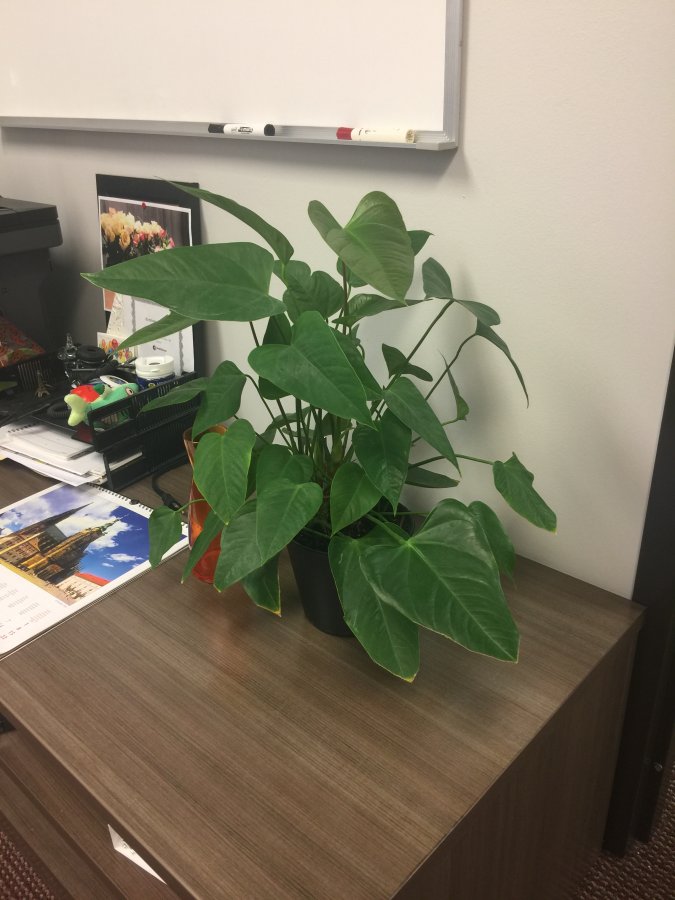 I can’t see the base of the plant to tell more. I’m not expert in these genera, but to my eyes these leaves look more like of those in the Anthurium genus (?). Possible a cultivar in the A. andraeanum. Maybe these included links can help you further. Best wishes! https://houseplantz.net/anthurium-andraeanum-flamingo-flower/