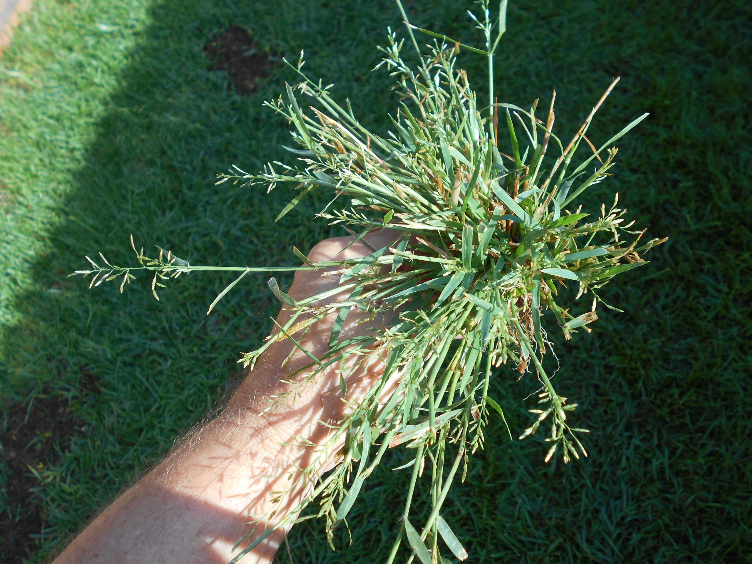 I have a Kentucky 31 fescue lawn and can't identify this plant in the fescue. I am beginning to overseed and replanting fescue where needed. The roots are short and the plant comes out of the ground without much effort. The stems are like straw and feels coarse when walking on it in bare feet. Is this clump fescue? Dalis grass?
