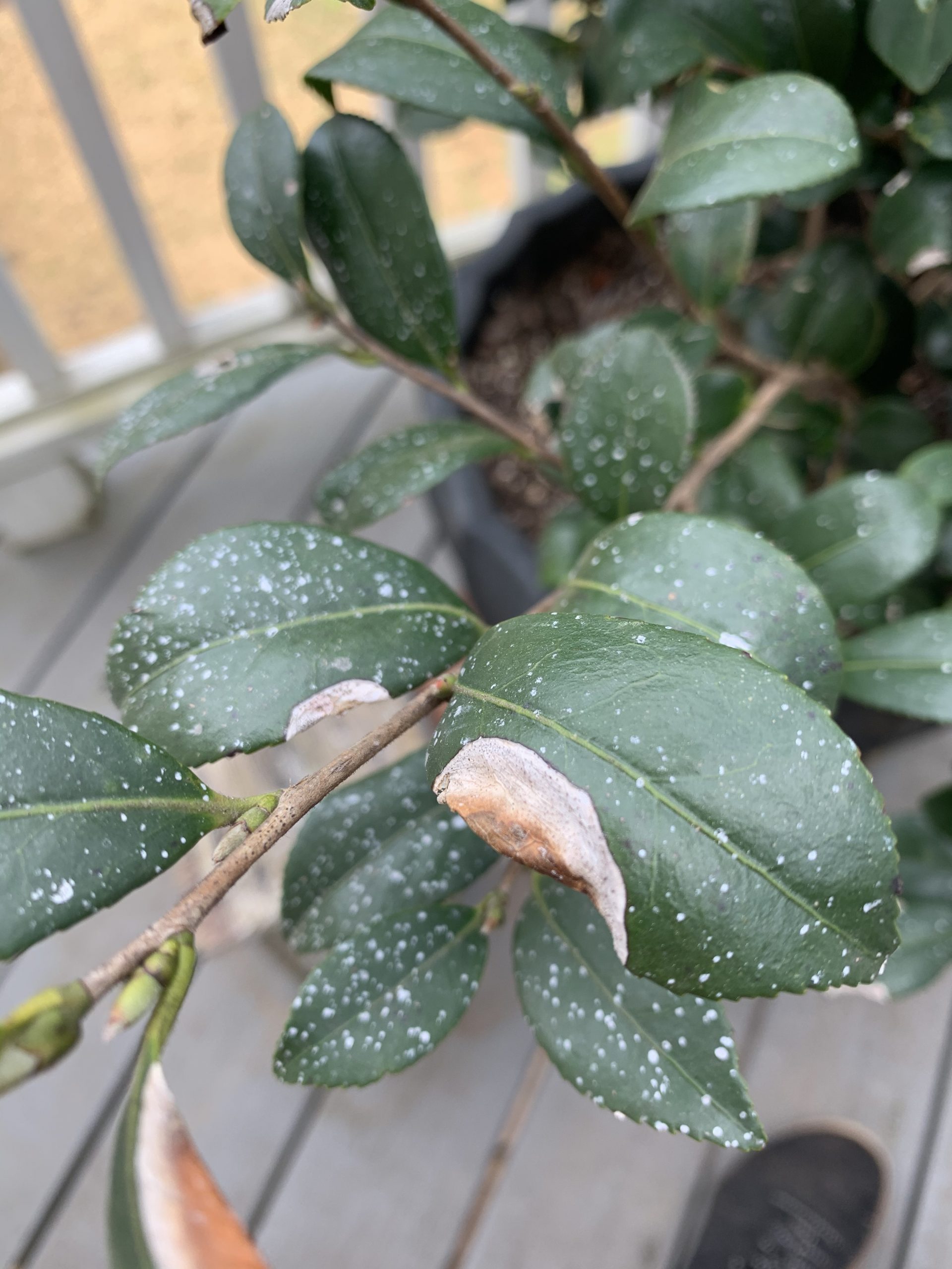Regrettably I’m not certain what are these spots, they don’t have the appearances of camellia diseases that I’m familiar with. Best you try the experts of the local Camellia Society. For now check out this included link below for various images of camellia diseases. Best wishes!