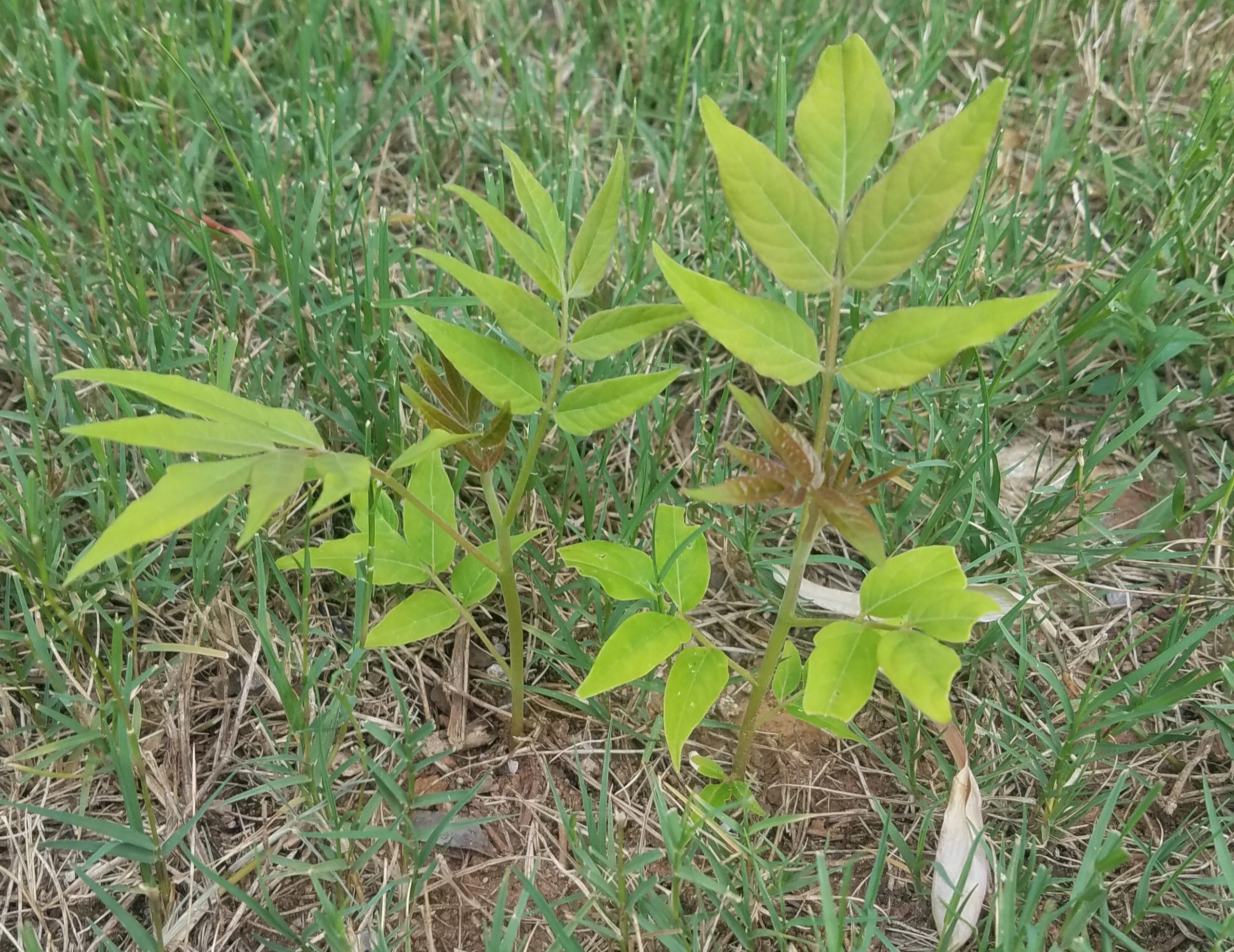 Maybe ‘tree-of-heaven’ (Ailanthus altissima)? Copy & paste the included link below for information and see if you have a match. According to sources the roots have an unpleasant odor. Click on the “View Images” tab for more photos. If this isn’t a match, please let one specimen grows more mature and resubmit with new photos. Best wishes!