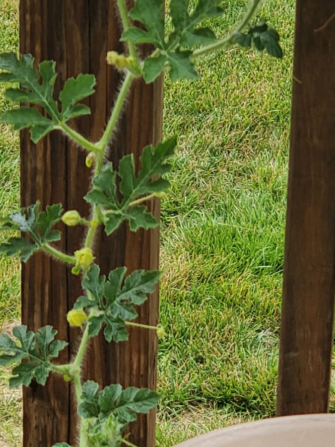 Top one is melon, second one one is cuke As female flowers appear you can see the baby fruit under the flower