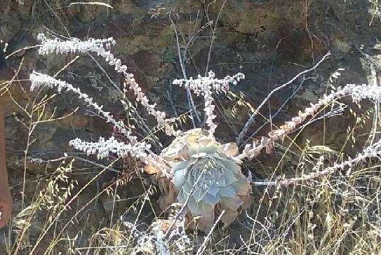 Maybe Chalk Dudleya/Chalk Liveforever (Dudleya pulverulenta). Check it out and see if you have a match. Click on images to enlarge from the link below. Best wishes! http://calphotos.berkeley.edu/cgi/img_query?where-genre=Plant&where-taxon=Dudleya+pulverulenta