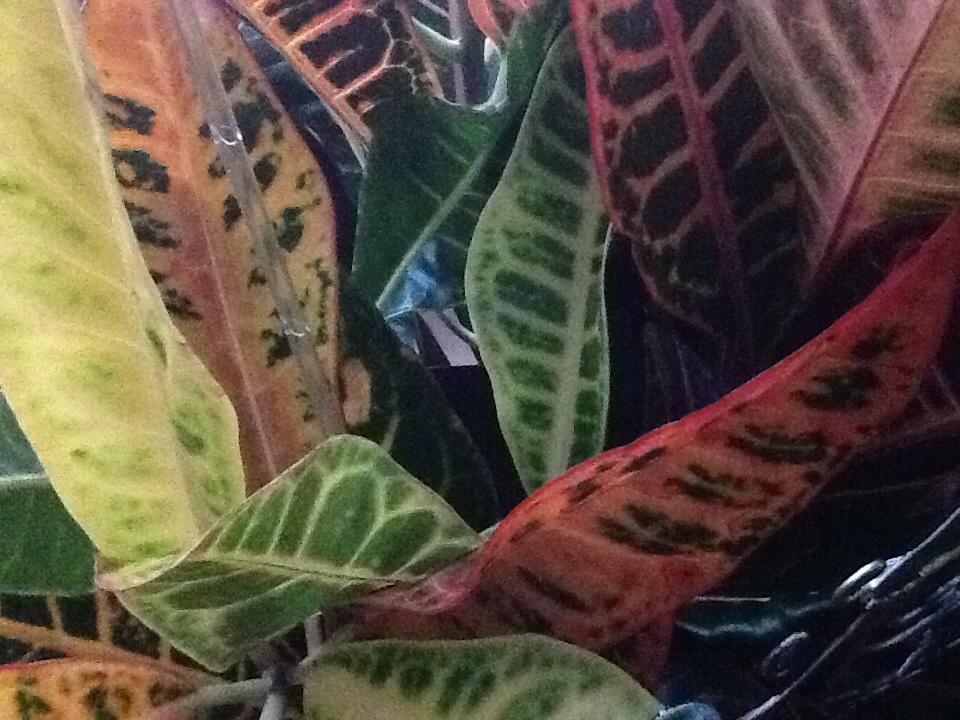 It’s a Croton. Moderate light so that the leaves keep great color. Does not like wet feet. If outside all summer it will drop leaves when brought in, but soon has new growth.