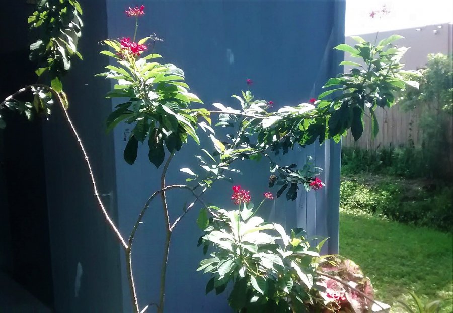 Check out Jatropha (Jatropha integerrima). You still get high mark for ‘plants sleuthing’ which we all love to do. Best wishes! http://looking-at-plants.com/plants_a_-_z/jatropha_integerrima