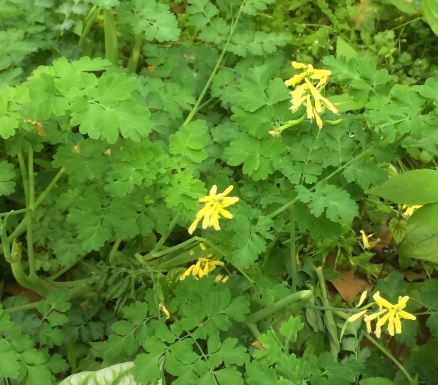 I wish I could see the flowers clearly, I could only speculating and suggesting this maybe a type of corydalis/fumewort (Corydalis). I don’t know if this plant is non-native or native. But according to source some of the species growing in GA is C. micrantha (slender corydalis) a U.S. native, and C. flavula (yellow fumewort) A native of eastern U.S. link below is for both , click on images to enlarge. Check it out and see if you have a match. If that it isn’t, make new post with a closeup of flowers. Best wishes! https://www.google.com/search?q=Corydalis+micrantha&tbm=isch&tbo=u&source=univ&sa=X&ved=0ahUKEwjDp4qOm7HTAhVH4GMKHWRXCRkQ7AkIUg&biw=1722&bih=822