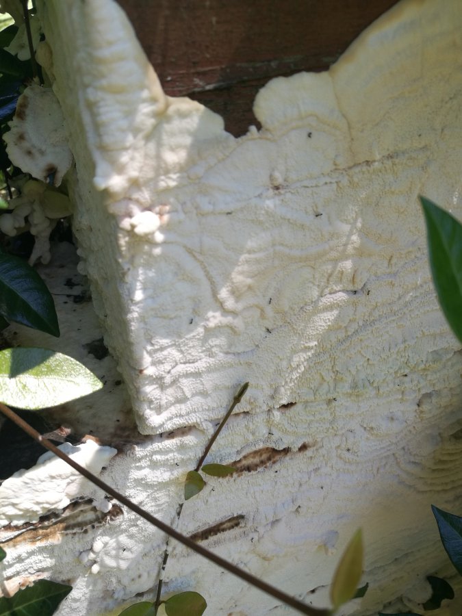 Help! This fungus ia taking over my wooden wall! Appeared in the last couple of days on my wooden wall, peels pretty easily. I have alot of ants living in that wall as well, not sure if that is significant. What chemical can I use to get rid of this? Is it dangerous to handle or can I just scrape it off?