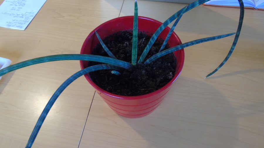 This plant has a strong, leathery feel to it. Subtle striping. Very dark green.