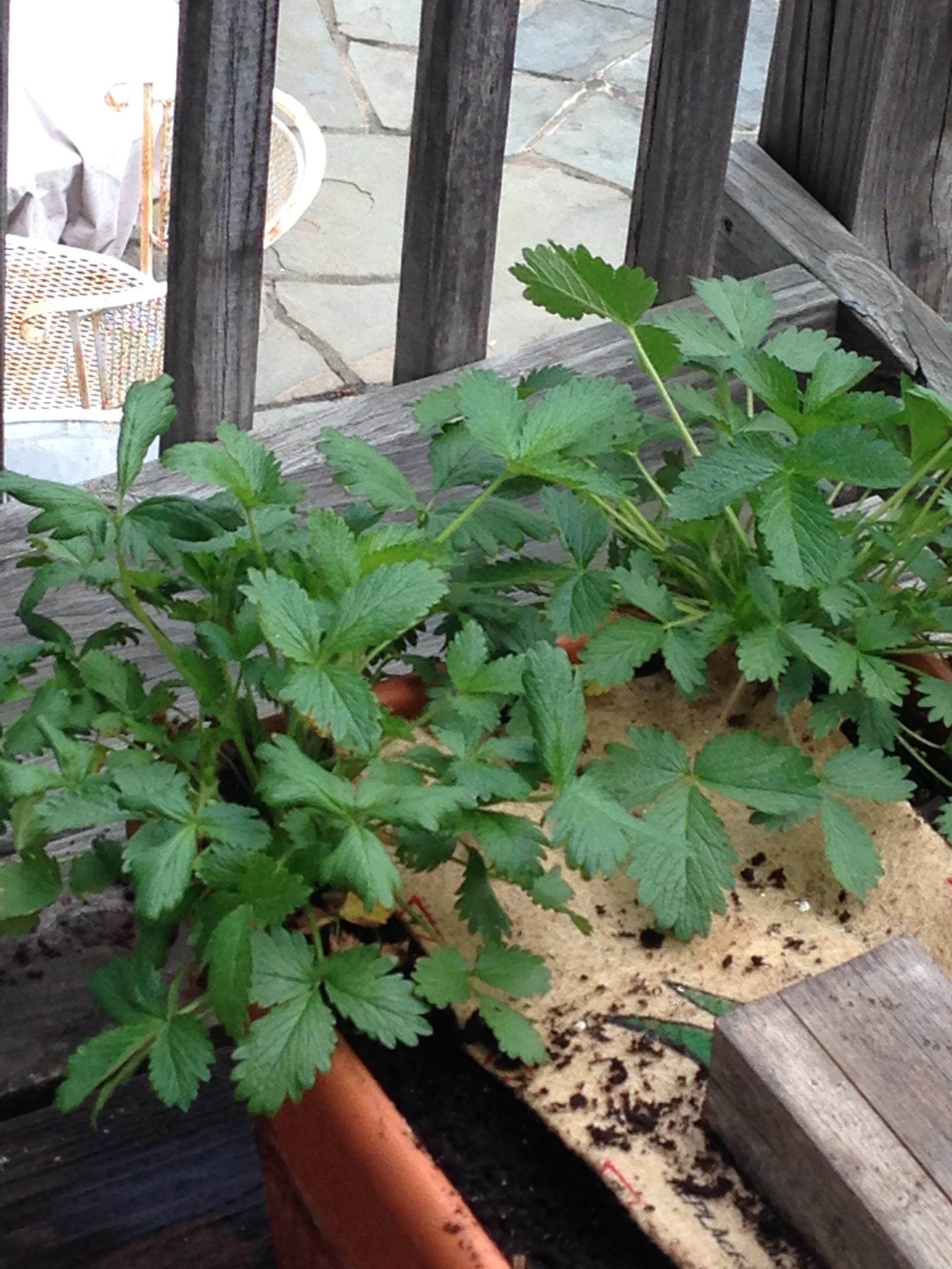 I found these two plants growing with my strawberries and don’t know what they are. I suspect they are an herb from a couple of seasons ago b/c I have reused the pot and soil since, but I only grew parsley and basil in previous seasons, and these don’t look like parsley or basil to me. They don’t smell like anything, either. Please help! If they’re something edible, I’ll keep them, but if not, out they go. Thanks!
