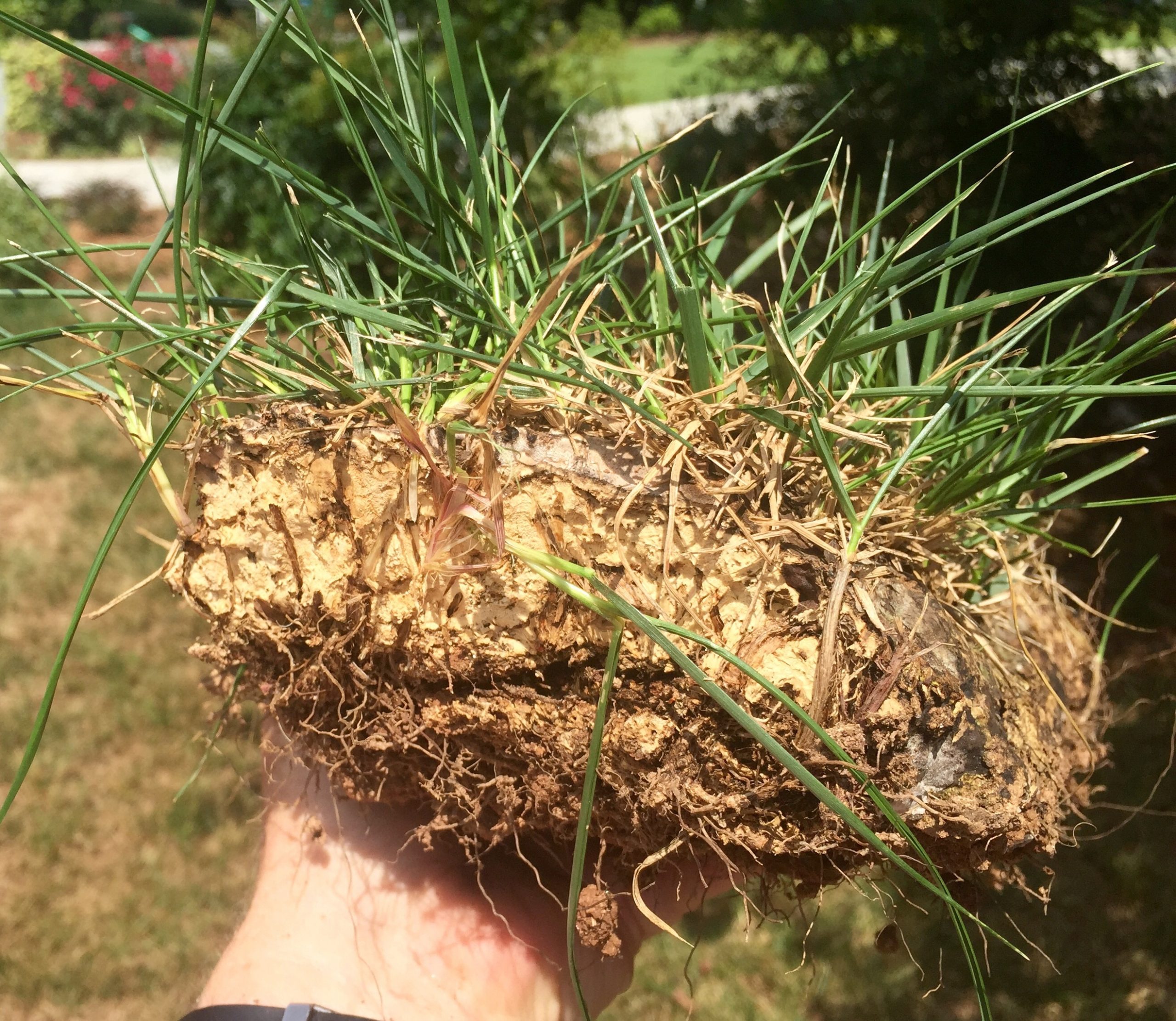 This showed up in my lawn last year also. I noticed it when de thatching my fescue. It is hard and fibrous, like a woody mushroom. It is on the surface, and has gotten very thick right on top of a sprinkler head. There are several small patches of it in the same area. It appears white when looking at it snuggled down in the grass roots. I whacked it with the claw of a hammer and ripped it out. It seems to grow on the surface. How do I get rid of whatever this is?