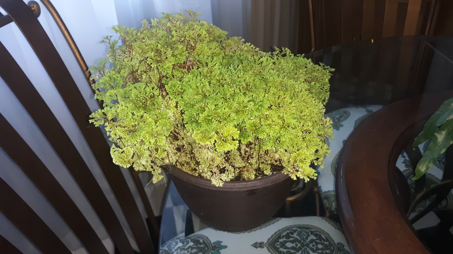 The plants details are too blurry to tell for certain. This could be a type of moss (Selagiella?)? If this is of the genus, sorry I can’t tell which species or cultivar this is. Check out these included links for some of the cultivars and for growing information. Best wishes! https://en.wikipedia.org/wiki/Selaginella_apoda