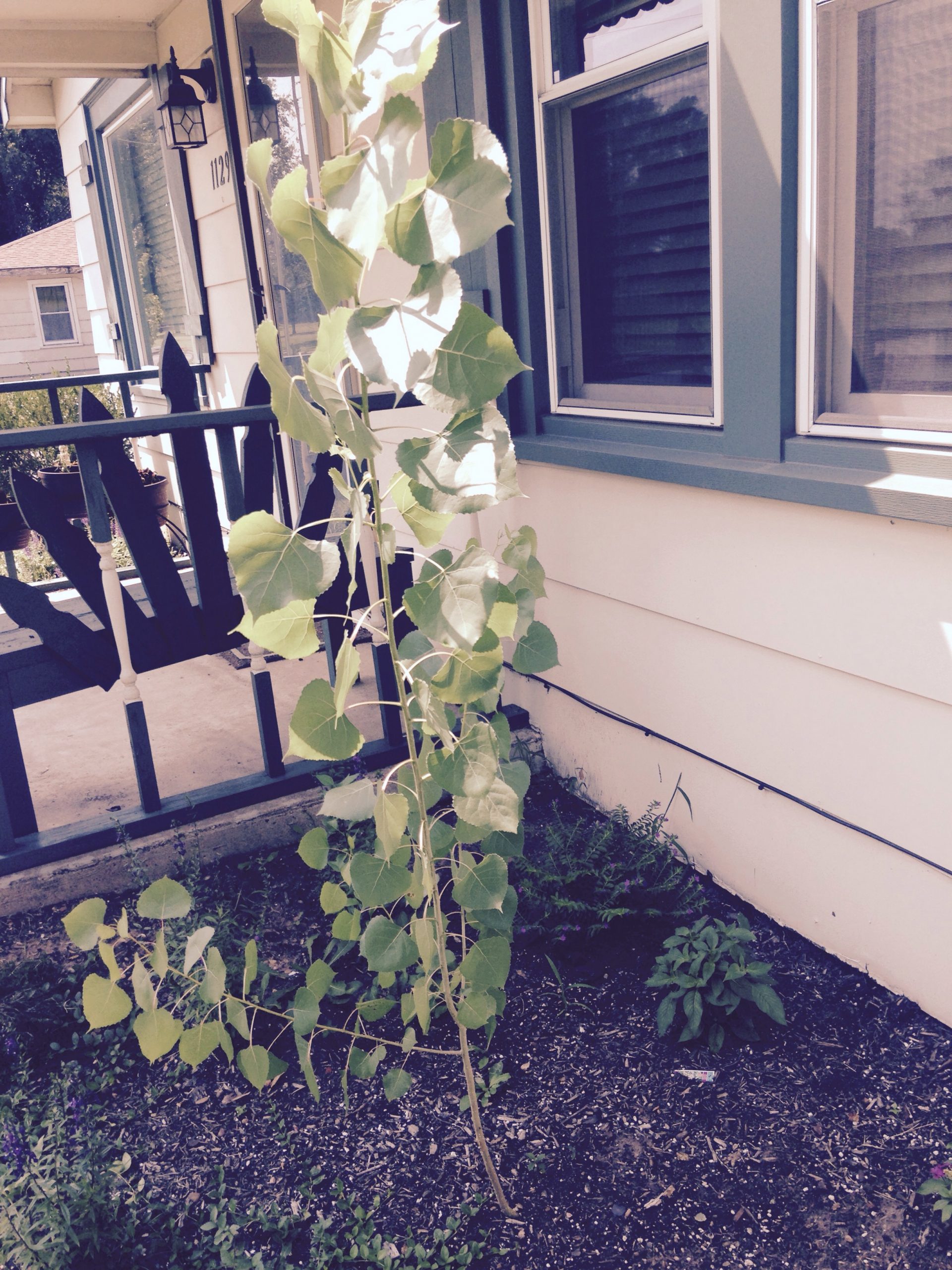 This looks like a seedling Cottonwood tree. Or a seedling Quakey tree.