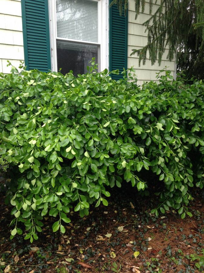 If anyone could help me figure out what type this bush is… It’s now about 4 feet tall and seems to have a 4-5 foot spread and is on the NW side of the house. It’s been raining so in the pictures the leaves are drooping but usually are upright. I would like to buy more of this type and plant it on the west side of the house as a hedge/border so any help would be appreciated. Thank you.