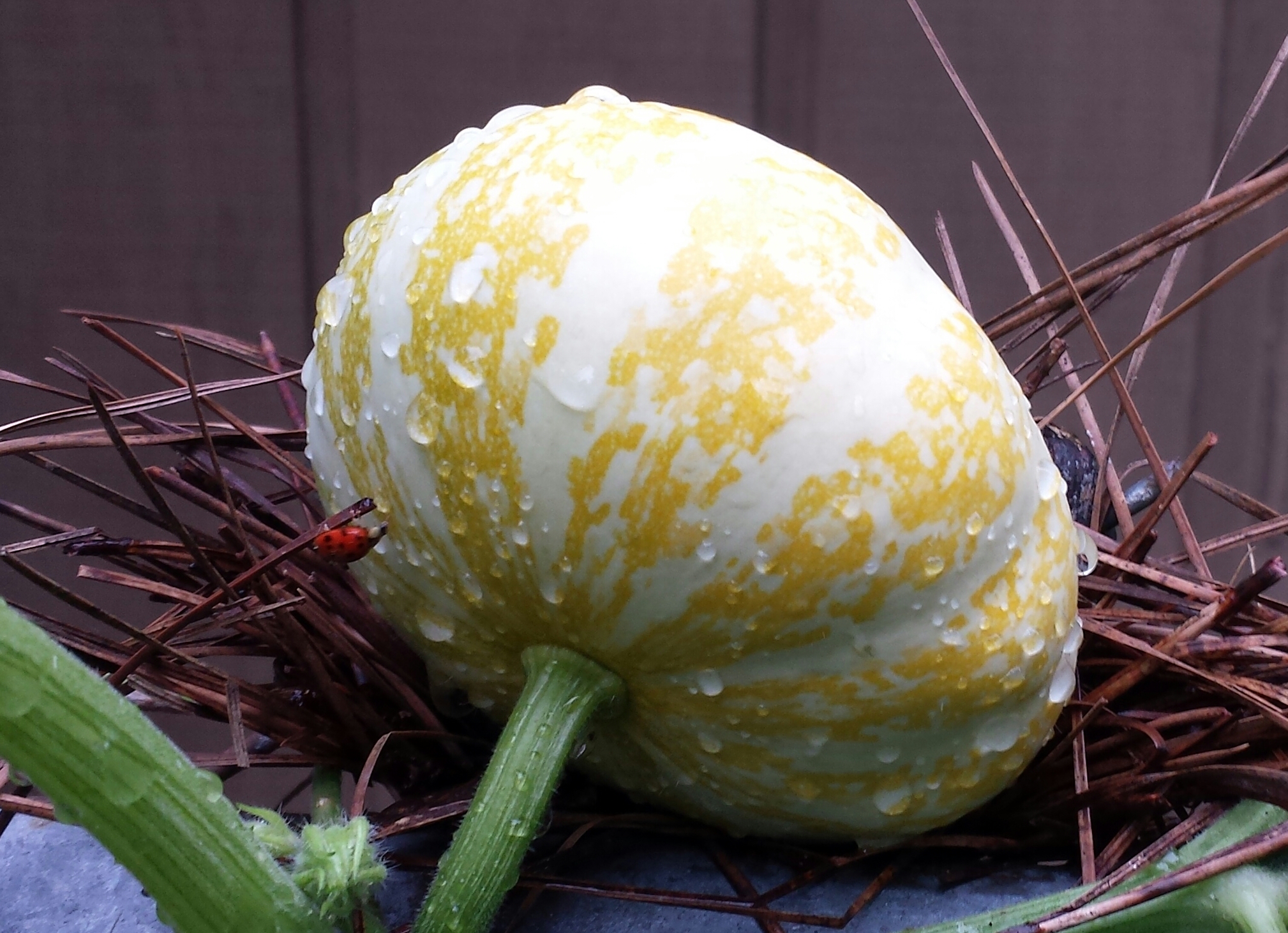 Is it a volunteer or did you plant it? If it’s a volunteer, it’s likely a hybrid generated from other squash and/or gourds that you (and/or a neighbor) grew last season. These are notorious for crossbreeding and seeds from this year’s harvest, if saved and planted, may not resemble the parent plant, depending on just what the bees used to fertilize the parent.