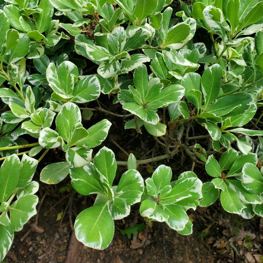 Light green leaves with white trimming. Likes full sun. Has grown to aprx. 4 feet tall and 6 feet wide (currently overgrown).