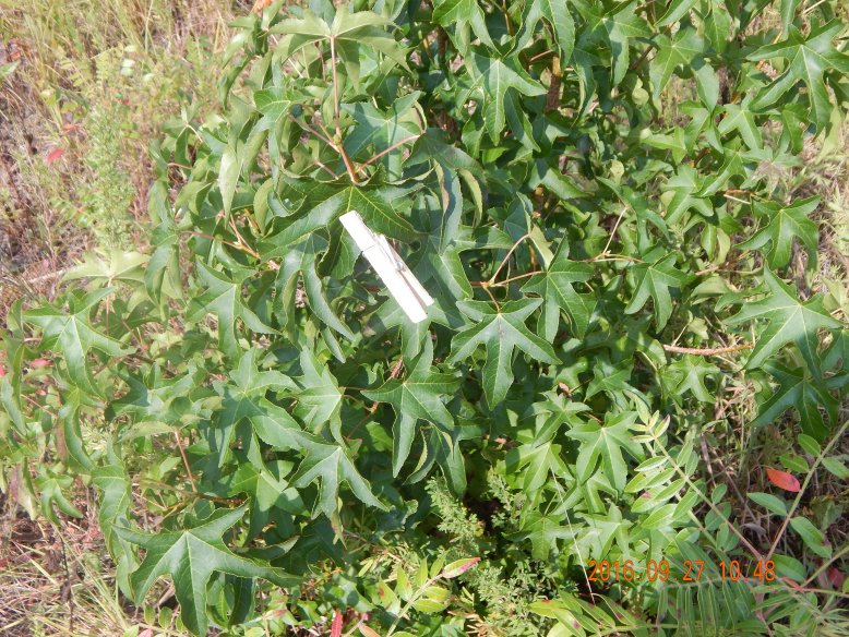 This plant is growing in the field,m there are a lot of them. Nobody water’s or feeds it. Its in full sun and doing very well. Very healthy looking, just my kind of plant. It would not be fair to call it a weed. It seems to be more like a tree or bush. There are a lot of woody branches coming up from the ground. Strong leaf, more leathery then a maple leaf.