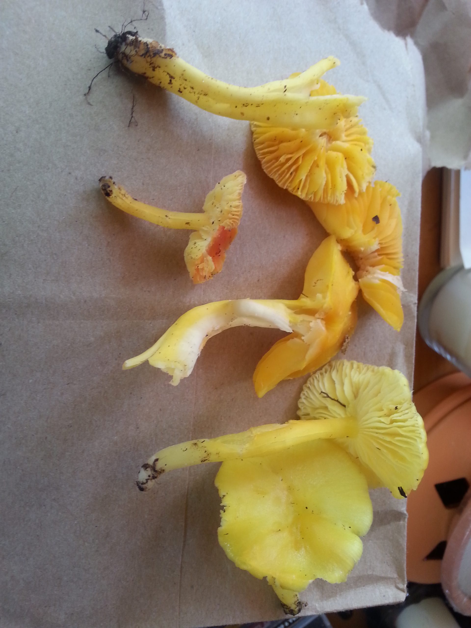 I am not a mushroom expert, but yours does looks similar to golden wax cap (Hygrocybe flavescens). You should to get in touch with the pros for more information. http://www.mushroomexpert.com/hygrocybe_flavescens.html http://www.namyco.org/