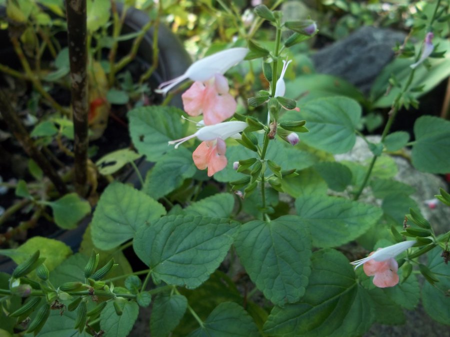Looks like tropical sage Salvia coccinea ‘Coral Nymph’. Best wishes! http://davesgarden.com/guides/pf/showimage/329991/