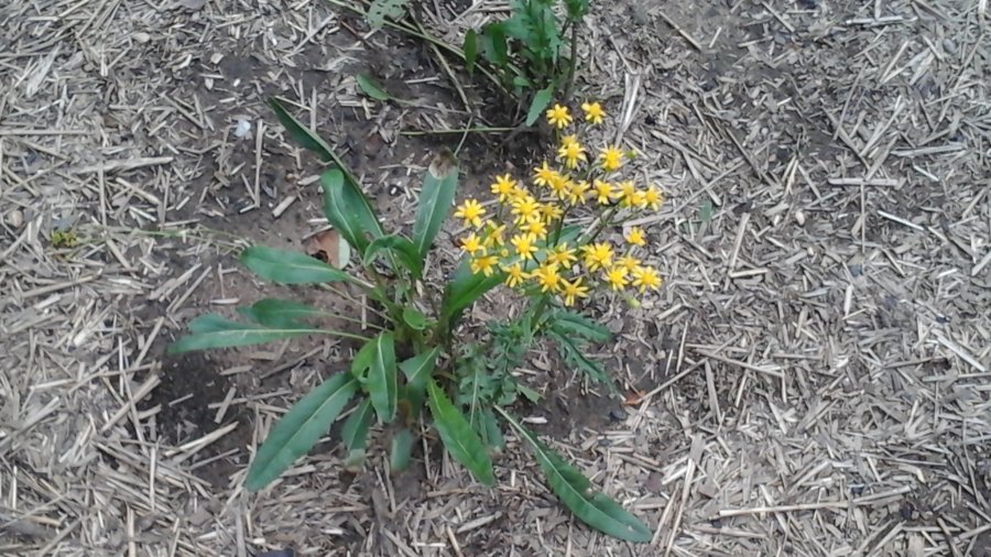 From this distance it’s too far away to tell. Could you give us closeup of the plants, flowers, back of the flowers & leaves? Some plants species their basal leaves shape look different than those on the upper stems as in the Packera genus. These included links with leaves images of some of the species. Best wishes! http://www.illinoiswildflowers.info/prairie/plantx/bal_ragwort.html