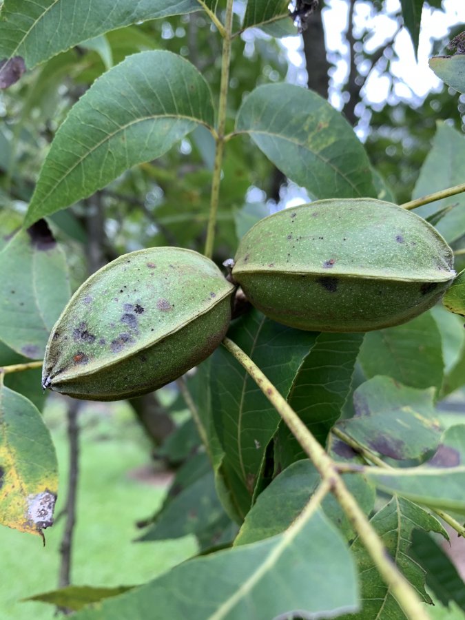 WeÕve been in our home 2 years. Last year this tree was just leaves but this year there is a nut or fruit, but I canÕt tell what it is.