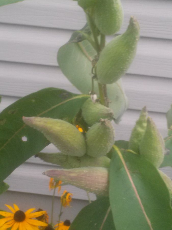 This milkweed plant is the host plant for the Monarch butterfly. They lay their eggs on the milkweed and the caterpillars eat the milkweed until full grown, then the find a place to transform into a chrysalis. Two weeks later a Monarch butterfly emerges.