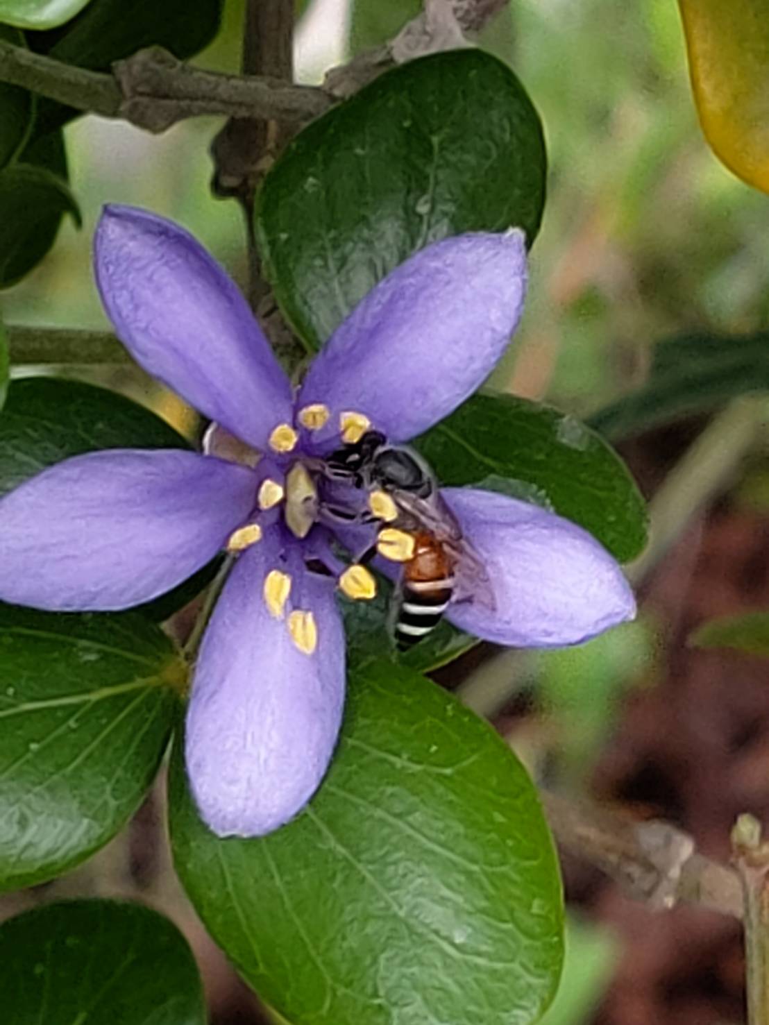Wish we could see other details of the plant to tell more. For now I could only take a guess. Perhaps a species in the Guaiacum genus (wood of life ” lignum vitae”)? Copy & paste the included link below for the species G. officinale for more information. Best wishes!