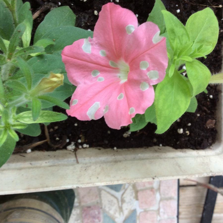 This is the 2nd polka dot Petunias I have had. The first was dark purple & it came off a plant that was a medium pink. The 2nd one was the one in the picture & came from a striped pink plant. I’ve never seen or heard of a dotted petunia. Is this normal or is there something harmful causing this. They sure are pretty.