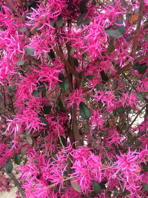 It is Loropetalum chinense, Fringe Flower. http://www.clemson.edu/extension/hgic/plants/landscape/shrubs/hgic1085.html