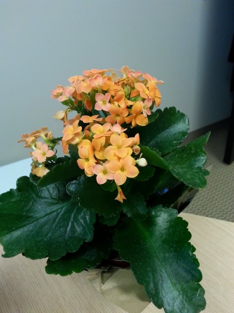 Leaves resemble succulents, beautiful small orange flowers. Would love to know what it is so I may care for it properly. It was given to me when I started my new job and ‘lives’ in the office.