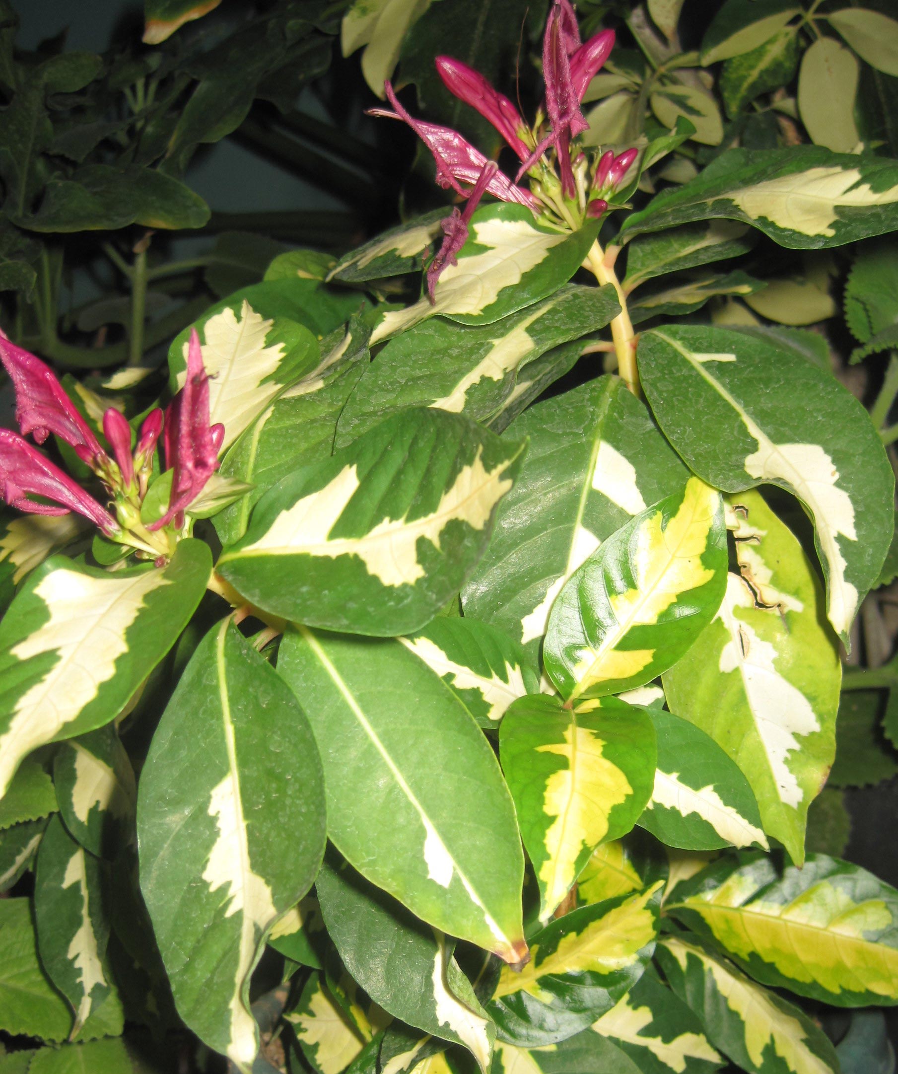 The plant is in a 13″ pot. There are variegated leaves with entire margin