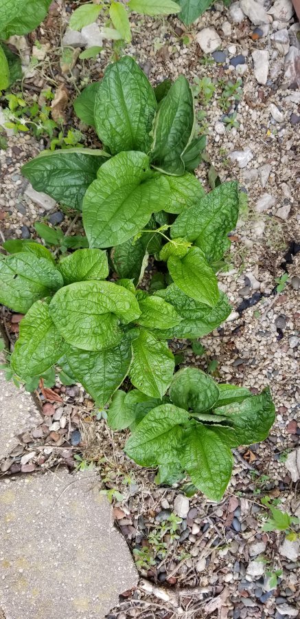 It’s hard to tell without flowers. There are few plants with similar leaves shapes. Please resubmit and give us an update as these grow more mature. For now check out a species in the navelwort (omphalodes). Click on images to enlarge. Again flowers are needed to rule out or confirm this speculation. Thank you and best wishes! https://www.missouribotanicalgarden.org/PlantFinder/PlantFinderDetails.aspx?taxonid=278017&isprofile=0&