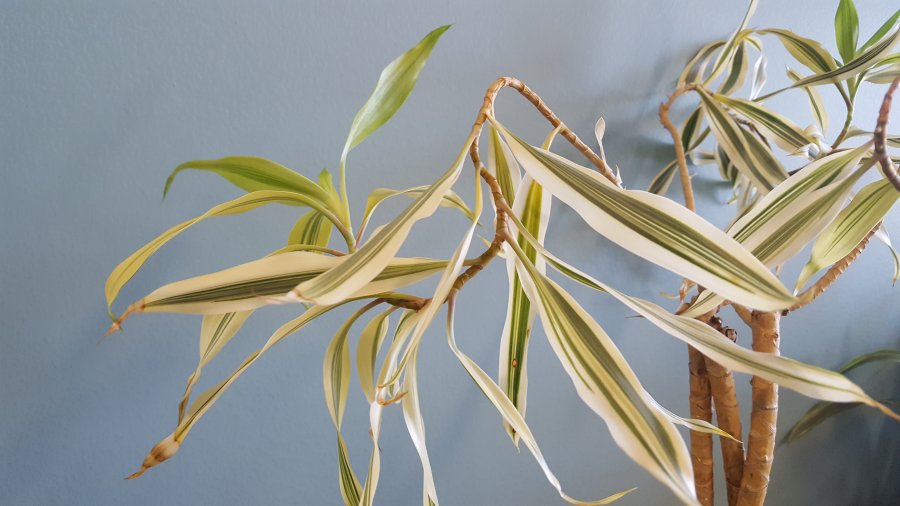 leaves looks like spider leaves, but kinda waxie, has braided trunk