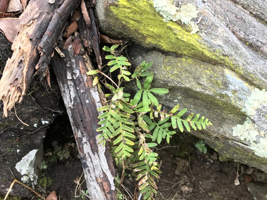 Looks like a type of ferns. I’m not an expert of this genus. I’m speculating this could be the resurrection fern Pleopeltis michauxiana formerly known as Polypodium polypodioides (?) Check out these included links and see if you have a match. Best wishes! http://www.polyploid.net/inplants3/pages/Pleopeltis_pol.html