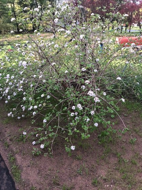 I was told before from a picture of the bud that this may be a Koreanspice Verbenum. Here are a few pictures of it in bloom, can anyone confirm that? Thank you for your help, John