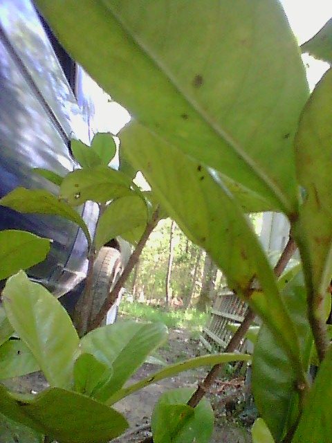 Leaves very shiny and rubber feeling, was thinking rubber tree but not sure.