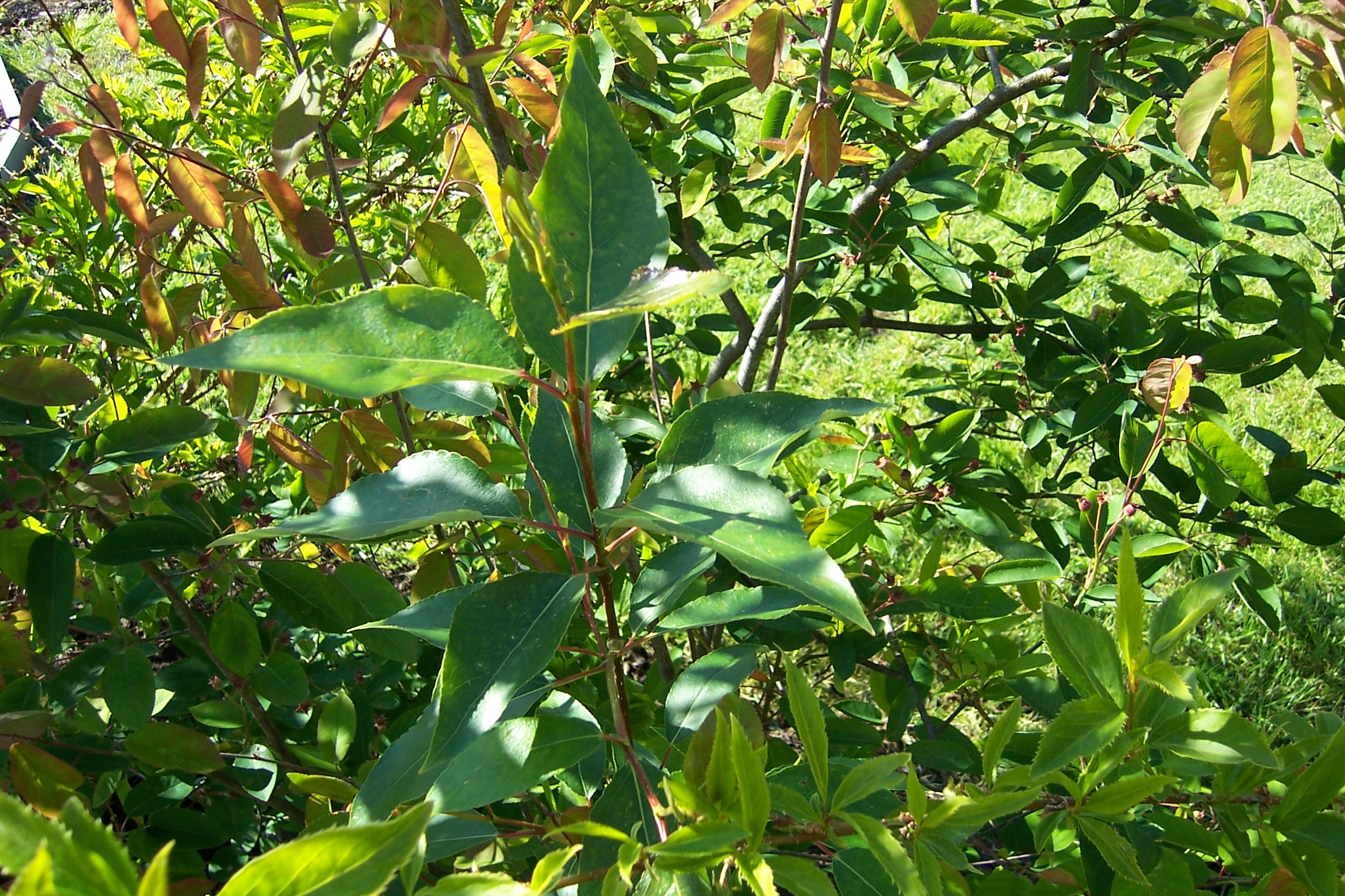 Greetings, a few weeks ago I noticed a strange plant growing right next to my service berry tree. A skinny stem with long, shiny pointed leaves, now approx. 4 feet tall. I did not plant it there but if it is not a weed and worth saving I will transplant it. Can any one identify this plant? Thank you very much. Zoe