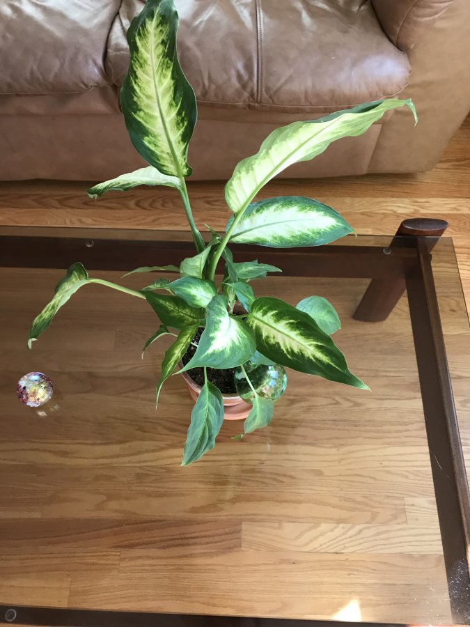 There are no flowers to help for a confirmed ID, I could only suggest you check out these groups below. Best wishes! 1- A cultivar in the dumb cane plants (Dieffenbachia genus, possible “Camille”?). 2- Some thing in the pothos group (Pippremnum genus). cultivars in the P. aureum spcies with similar leaves include “Glacier”, ” “Pearls and Jade”, etc… 3- Maybe a varigated form of creeping fig (Ficus pumila ‘Variegata’ (?). https://davesgarden.com/guides/pf/go/60368/