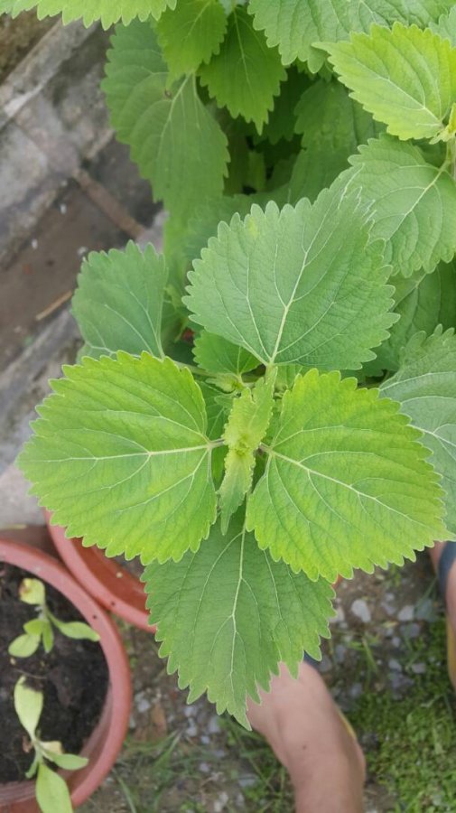 Looks like Perilla frutescens var. crispa, Shiso. It can be used to ease the symptoms of the common cold. https://en.wikipedia.org/wiki/Perilla