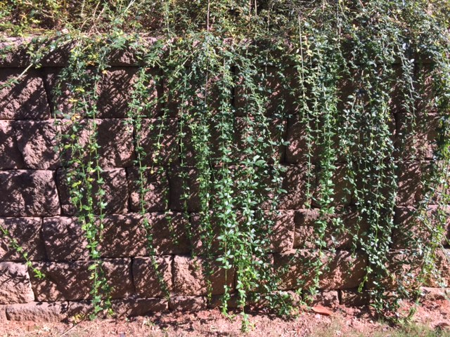 This plant grows on a wall behind our condo. It is very unsightly because it drops all of its leaves in the winter. It has a small white bloom in the winter. It also frequently has weeds growing in it. I would like to have the condo assoc. remove it but I need to identify it first.