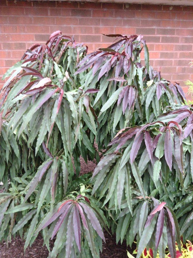 You’re welcome lena and best luck on “Bone Fire” purchasing! Thank you Shashi M. for your input. However according to source, the mast tree (Polyalthia longifolia)is only hardy to U.S.D.A. Zone: 10a-11 (Minimum 32¡F = 0¡C). St Louis, MO is in zone 6b, it will be too cold for mast tree in my humble opinion. The leaves of P. persica’Bone Fire’ can be varied as in these images from the included link below. Best wishes Shashi M! http://www.louistheplantgeek.com/a-gardening-journal/1096-prunus-persica-bonfire