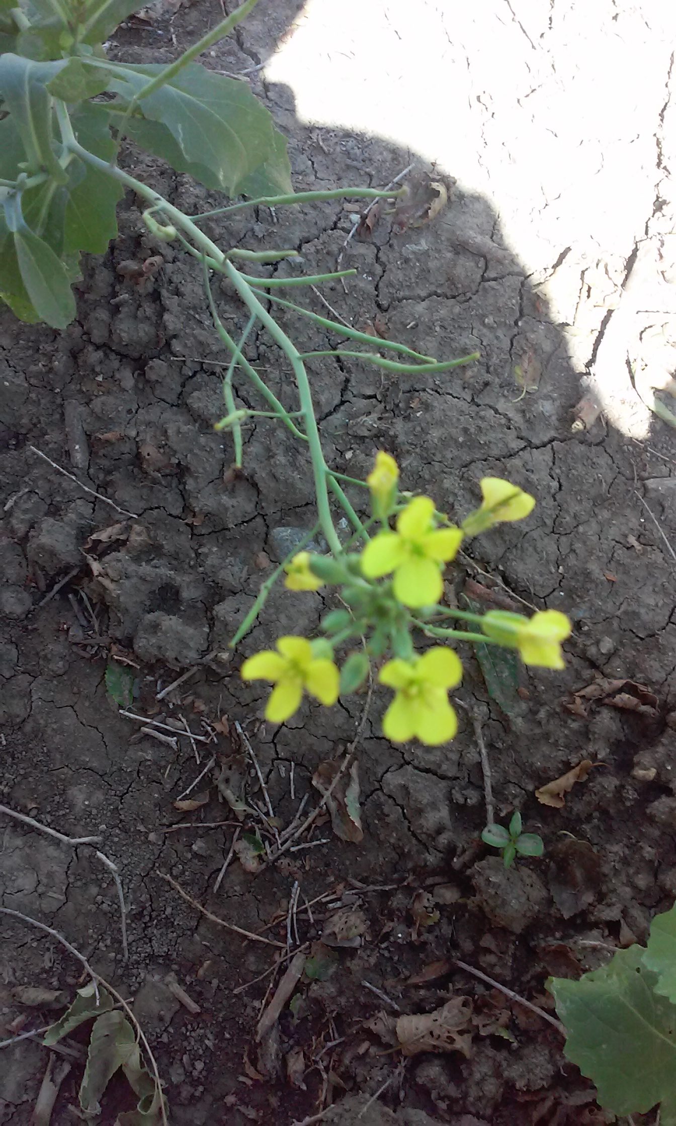 This might be field mustard (Brassica rapa). It is often confused with black mustard (Brassica nigra). the photo shows your plant’s upper leave is clasping the stem. B. rapa’s upper leaves do this, while B. nigra’s do not.