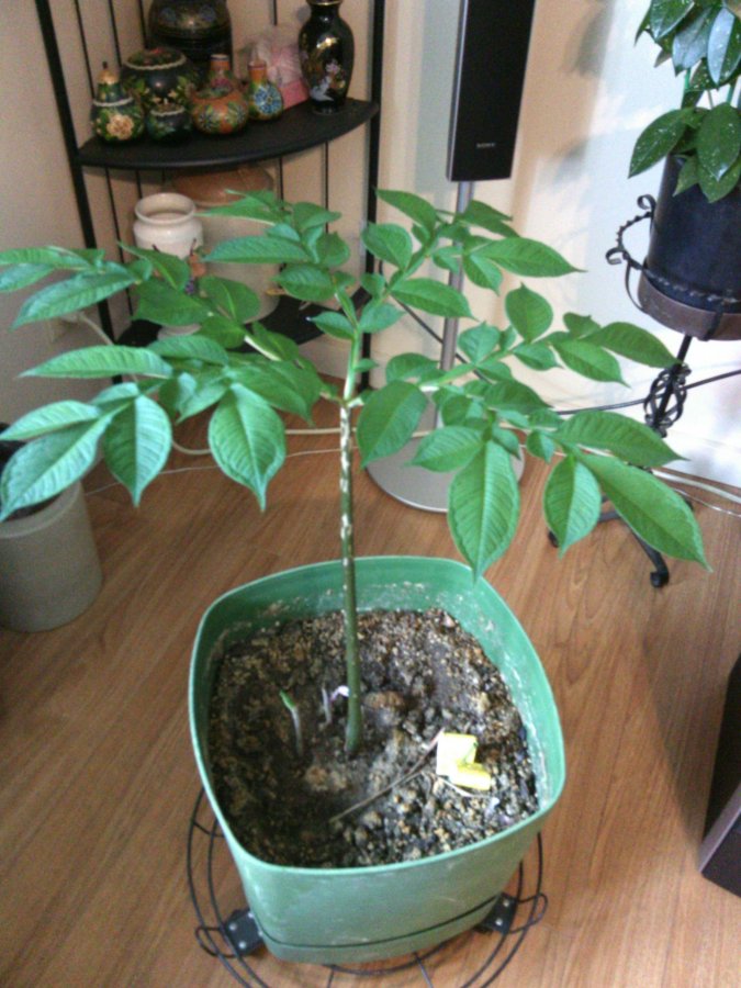 Dormant all Winter. Given a cup of water in April this plant grows very quickly and reaches maturity in 1.5 weeks. Grows up to two feet high. Very symmetrical and sun sensitive. No flowers. This plant sends up it’s stem or stock fully and then the leaves pop out and spread; within a day and a half it is in it’s final stage. In October it simply falls over and dies leaving the tuber dormant for the winter. Every three or four years it has one or two young.