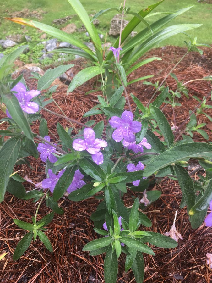 Looks like a type of wild petunia (Ruellia). I can’t tell which species this is. Link below is for Carolina wild petunia. Best wishes! https://www.google.com/search?q=Ruellia+caroliniensis,&tbm=isch&tbo=u&source=univ&sa=X&ved=0ahUKEwiQm72TgrDUAhUW3YMKHfbgB7cQiR4IgwE&biw=2144&bih=1015