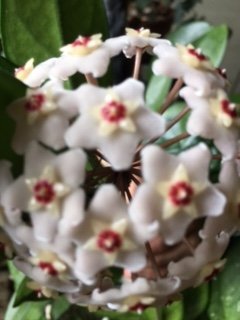 The flowers are star shaped with a red star shaped petal in the middle of each. The whole ball is round and ball shaped. Any ideas please?