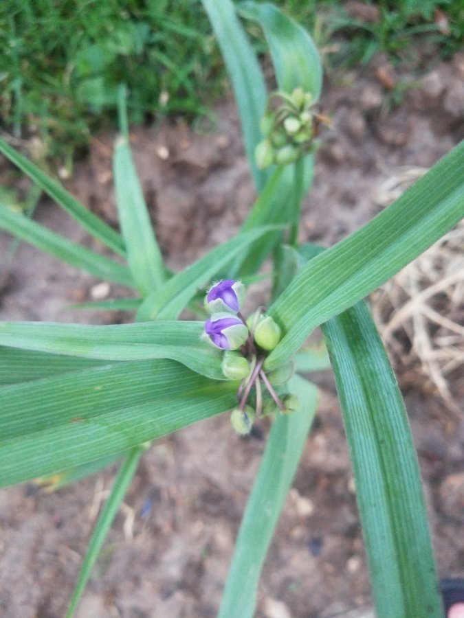 Long leaves. Clusters of purple blooms