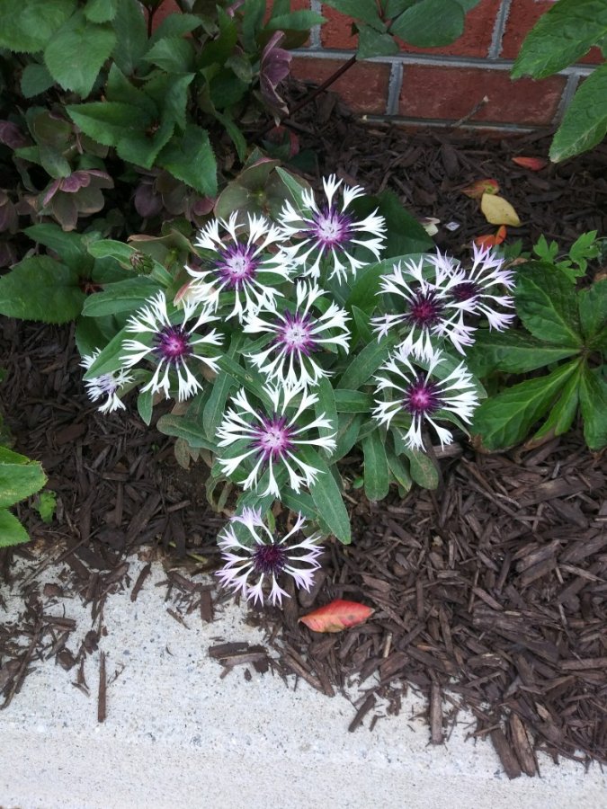 Mountain bluet (centaurea montana), I think a type of cornflower. Very striking! https://www.finegardening.com/plant/mountain-bluet-centaurea-montana-amethyst-snow