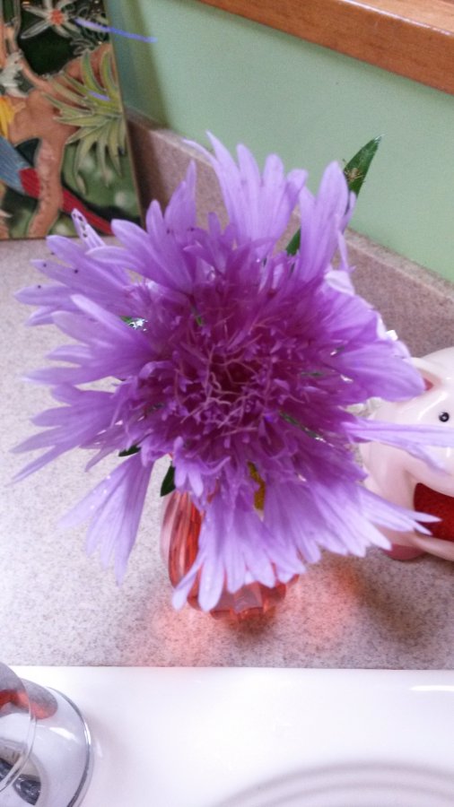Maybe a cultivar of Stokes’s aster (Stokesia laevis). Check it out and see if you have a match. Click on images below to enlarge. Best wishes! http://www.missouribotanicalgarden.org/PlantFinder/PlantFinderDetails.aspx?kempercode=r180